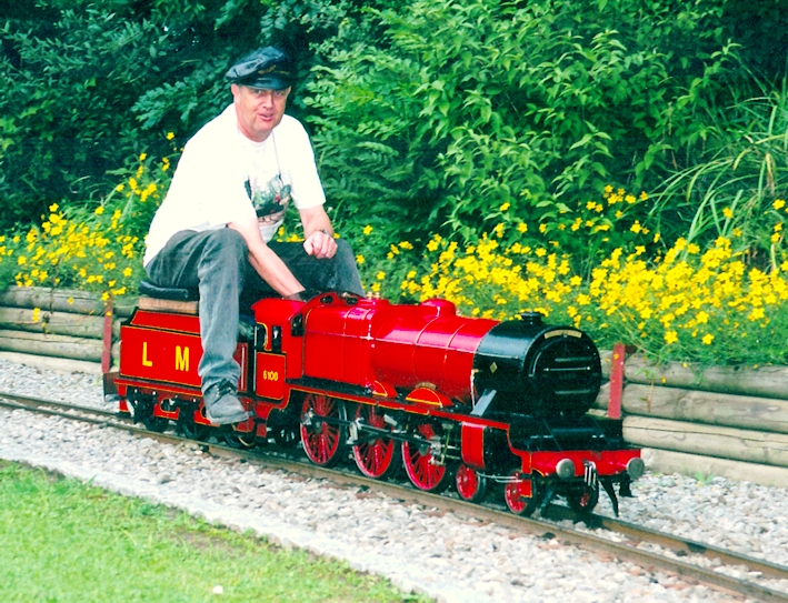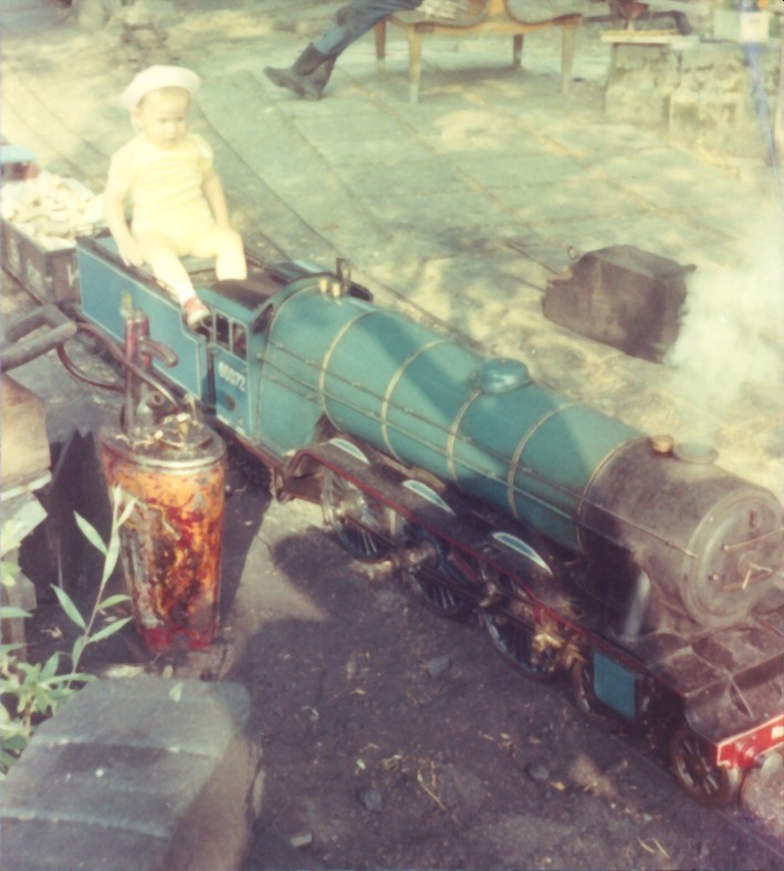 Foto Ueli Kilchenmann. Diese Royal Scot baute Viktor Brast nach längerer Krankheit, nachdem die BBB Eisenbahn bereits verkauft war, für seinen Sohn Jörg Brast (1967). Für einmal darf ich diese elegante englische Dampflok führen. Als Kind durfte ich zweimal mit meinem Onkel Traugott die Liliputbahn im Lido in Luzern besuchen. Dieses Erlebnis war für mich so einprägend, dass daraus in späteren Jahren 1975 meine Liliputbahn in Eschenbach LU und 1980 die heutige Anlage entstand.