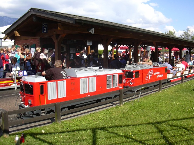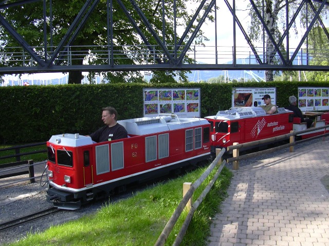 Miniatur "Gipfeltreffen" mit der Schöllenen-Lokomotive der Dampfbahn Gurten